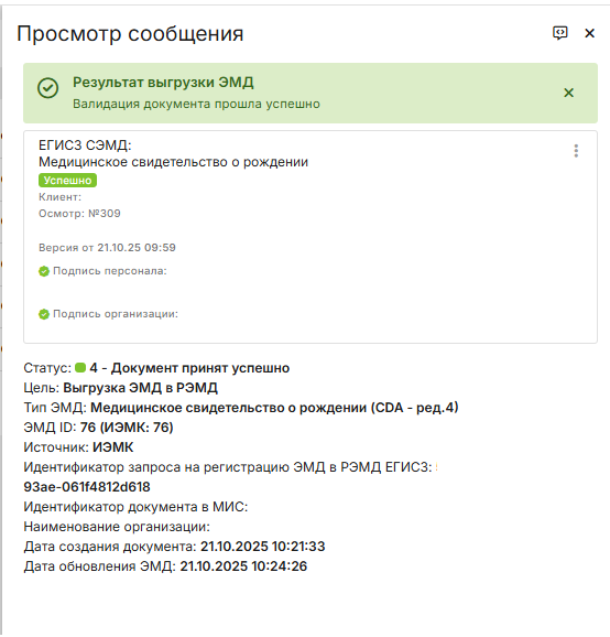 С Электронной медицинской картой (ЭМК). Данные для СЭМД автоматически берутся из карты пациента.