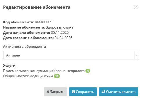 - Прозрачность использования — всегда виден остаток процедур и срок действия
