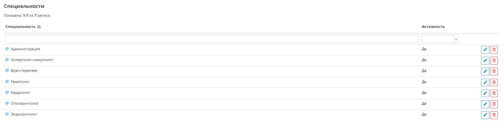 - Привязка к медицинским услугам — определение, какие услуги может оказывать специалист