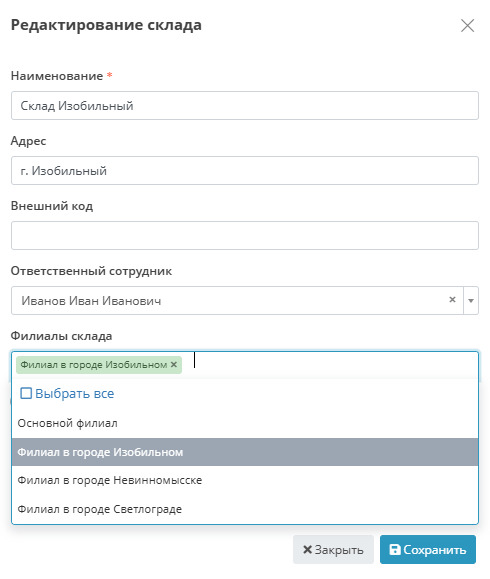 - Перекрестные доступы — возможность работы с данными нескольких филиалов