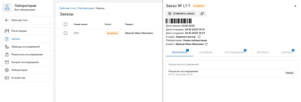Модуль «Лаборатория» — это цифровой конвейер обработки лабораторных исследований, который объединяет администраторов, процедурные кабинеты, лабораторное оборудование и пациентов в единую автоматизированную систему. Он работает как точный и безошибочный лабораторный ассистент, обеспечивающий скорость, качество и прозрачность на каждом этапе.