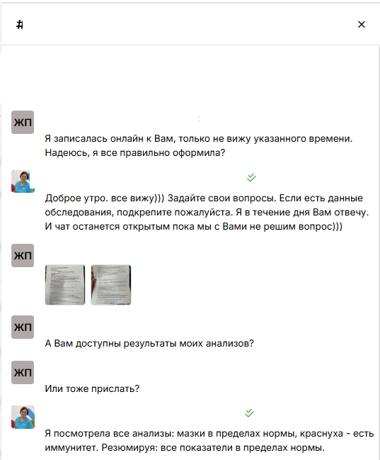 Врач проводит консультацию в защищенном чате, получает файлы анализов